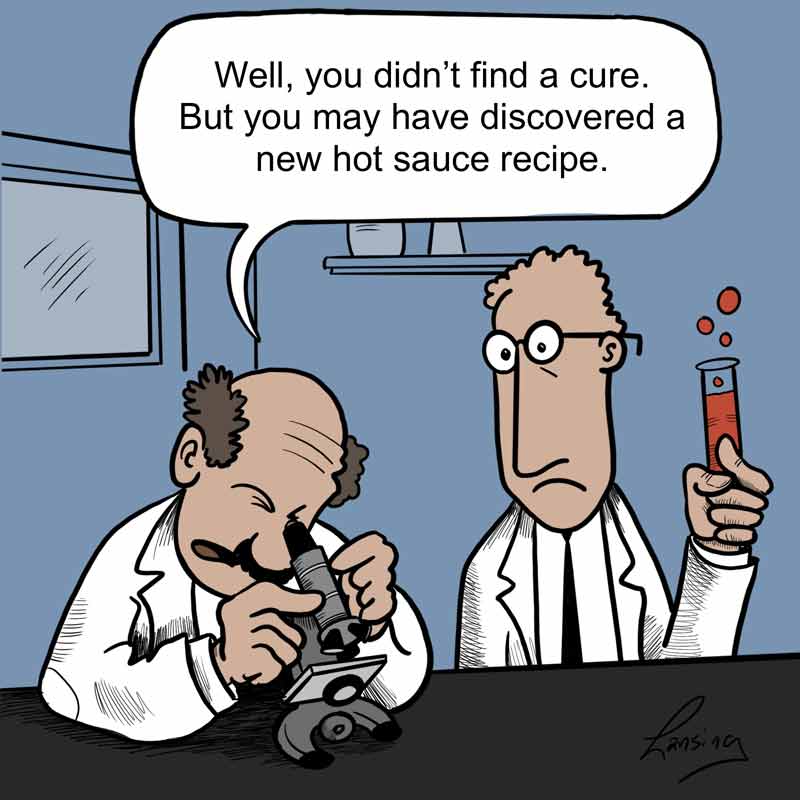 We love what we do and enjoy the lighter side of it. Each month we create a cartoon poking fun of the lab world we live in and send it out in a broadcast email.